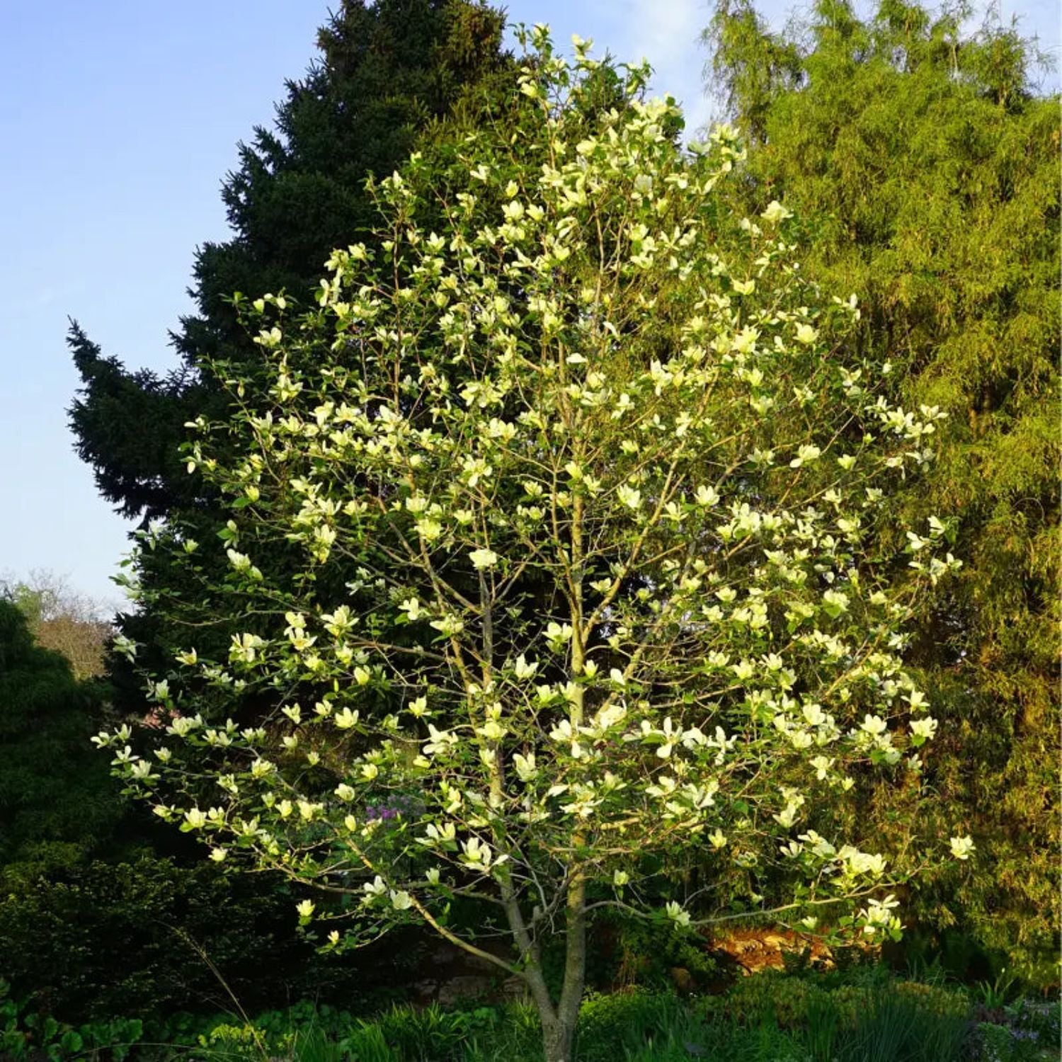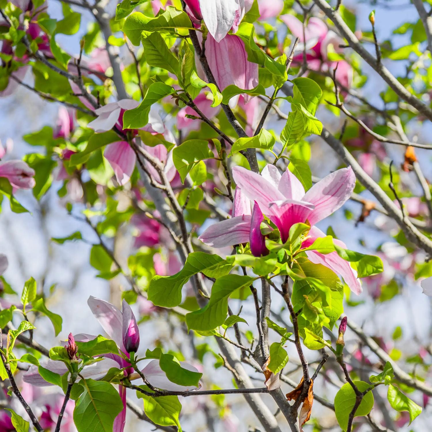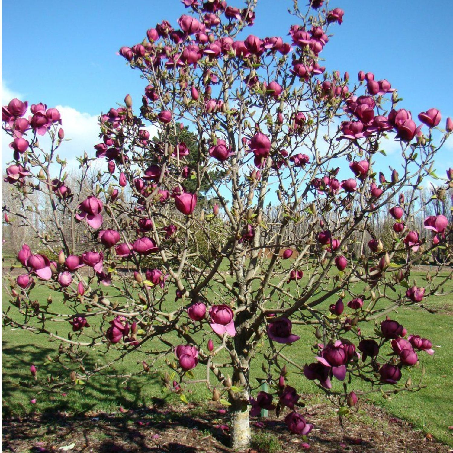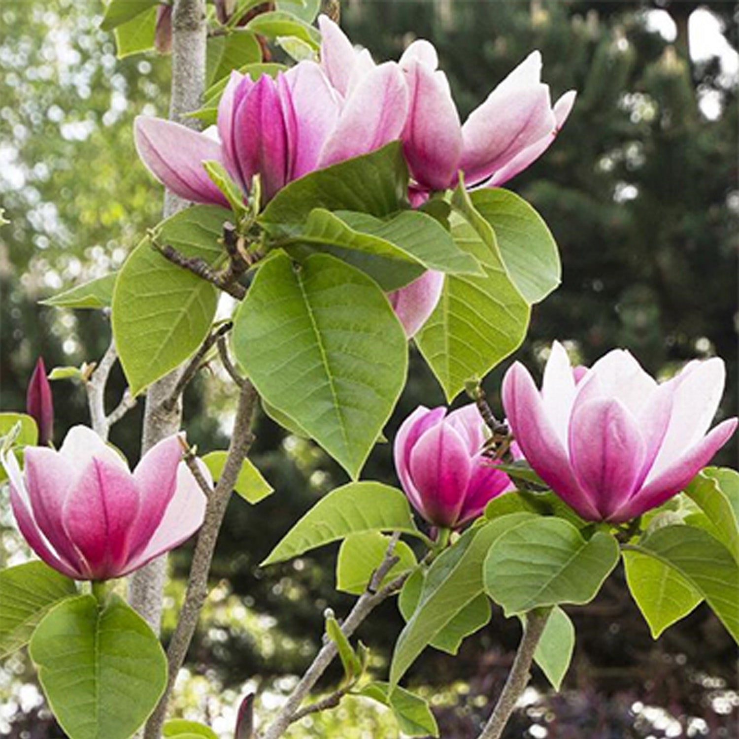 The Japanese magnolia, also called the saucer magnolia, is a deciduous variety known for its stunning, tulip-shaped flowers. Blooming in early spring before the leaves emerge, the flowers come in shades of pink, purple, and white, creating a breathtaking display. These trees are relatively small, reaching heights of 15 to 25 feet, making them ideal for smaller landscapes. Japanese magnolias prefer well-drained soil and full sun to partial shade. They are hardy in USDA Zones 4 to 9 and are valued for their ornamental beauty, often used as focal points in gardens.