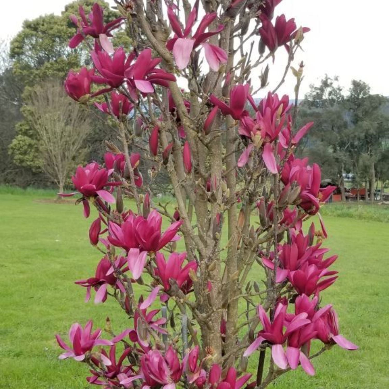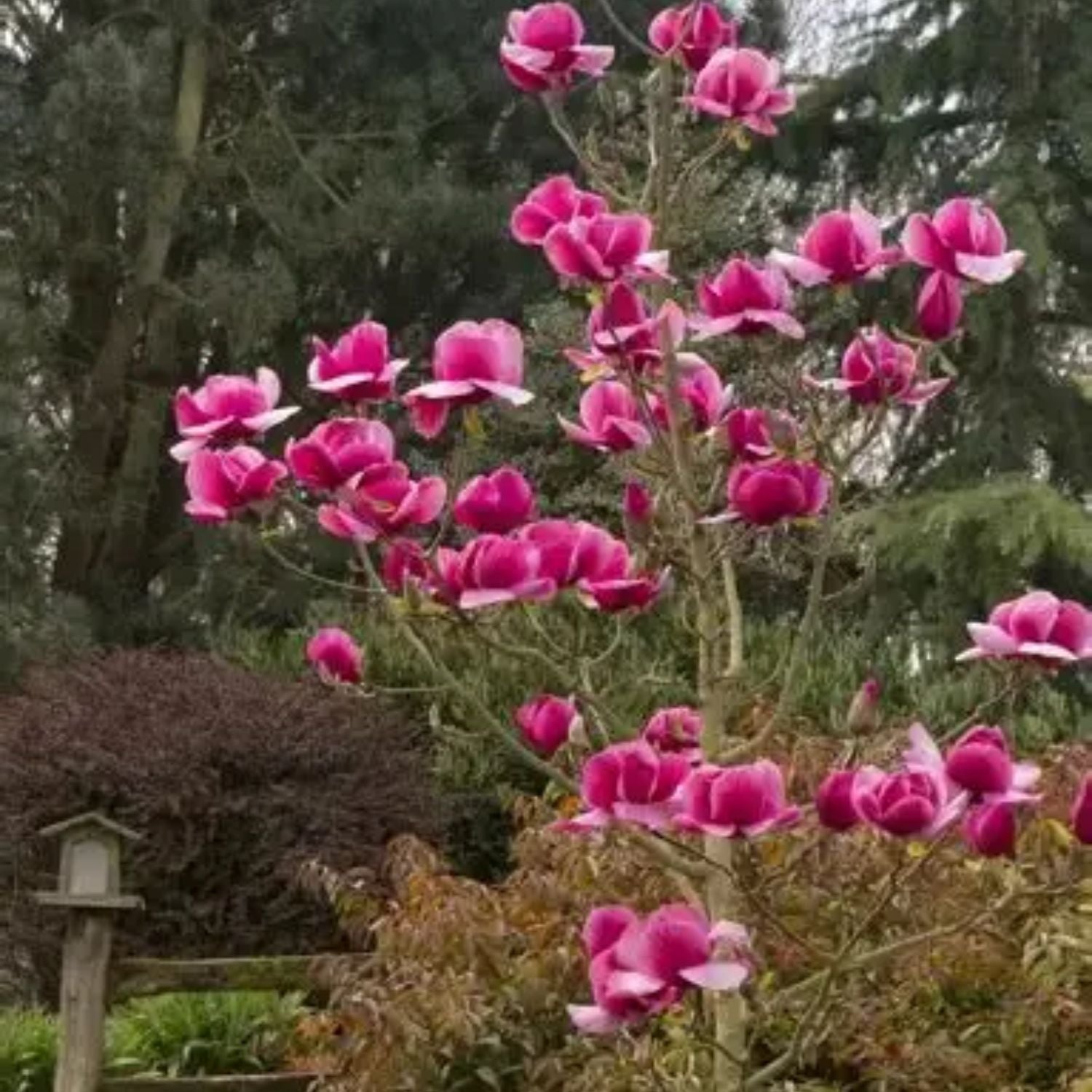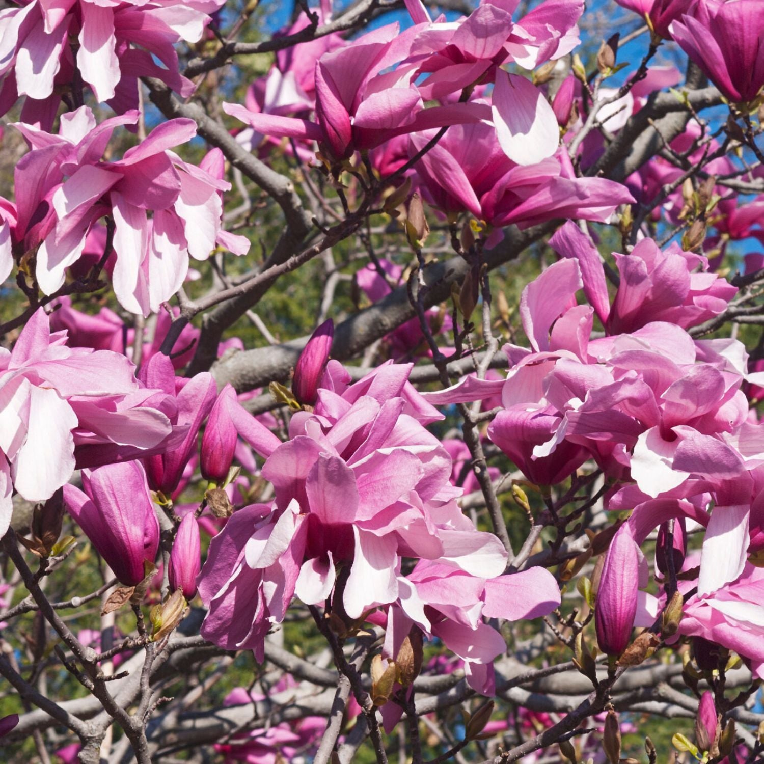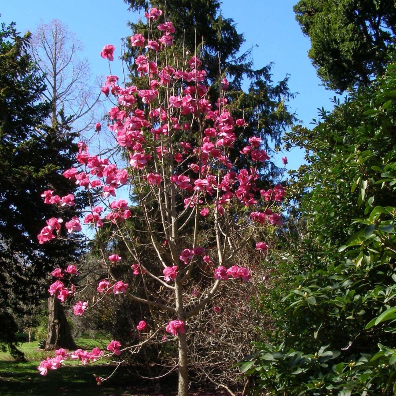 The Japanese magnolia, also called the saucer magnolia, is a deciduous variety known for its stunning, tulip-shaped flowers. Blooming in early spring before the leaves emerge, the flowers come in shades of pink, purple, and white, creating a breathtaking display. These trees are relatively small, reaching heights of 15 to 25 feet, making them ideal for smaller landscapes. Japanese magnolias prefer well-drained soil and full sun to partial shade. They are hardy in USDA Zones 4 to 9 and are valued for their ornamental beauty, often used as focal points in gardens.