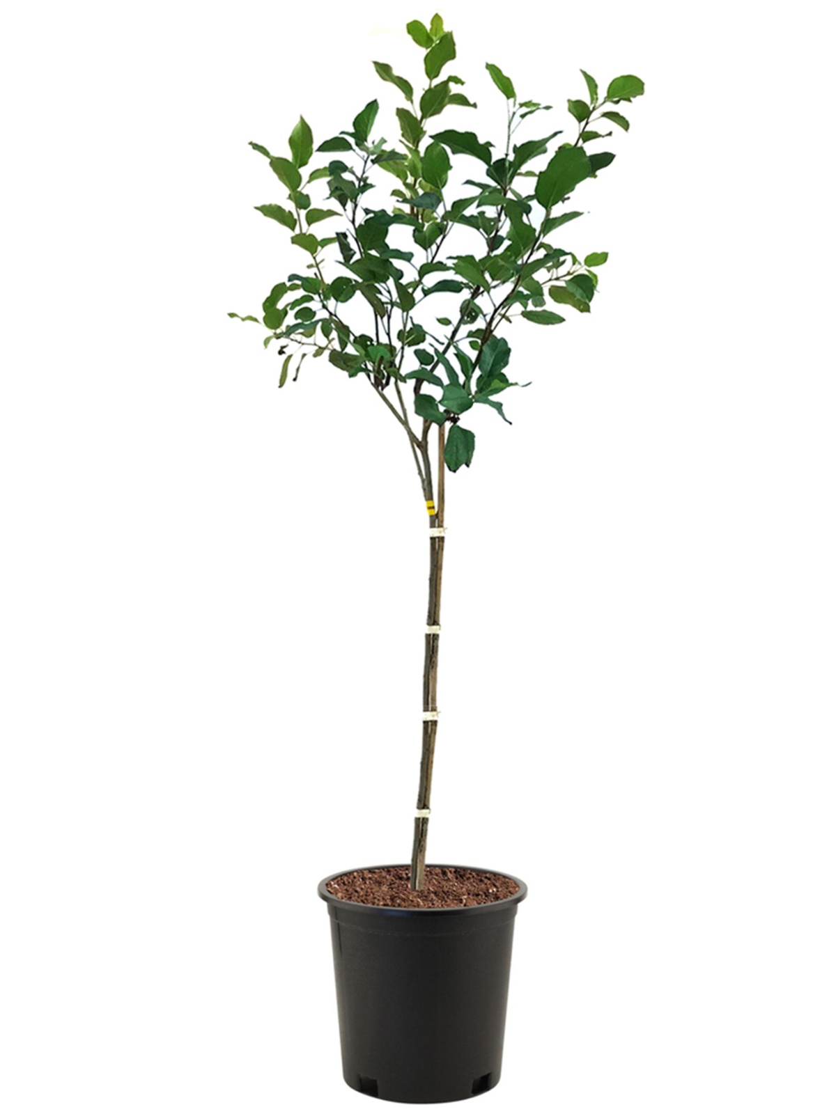 Apple trees are productive and strong when pruned and trained to a central leader (or main leader) structure. This type of structure has a pyramidal shape with a single upright leader limb as its highest point. This central leader is the newest extension of a long, upright growing trunk from which all lateral branches arise.