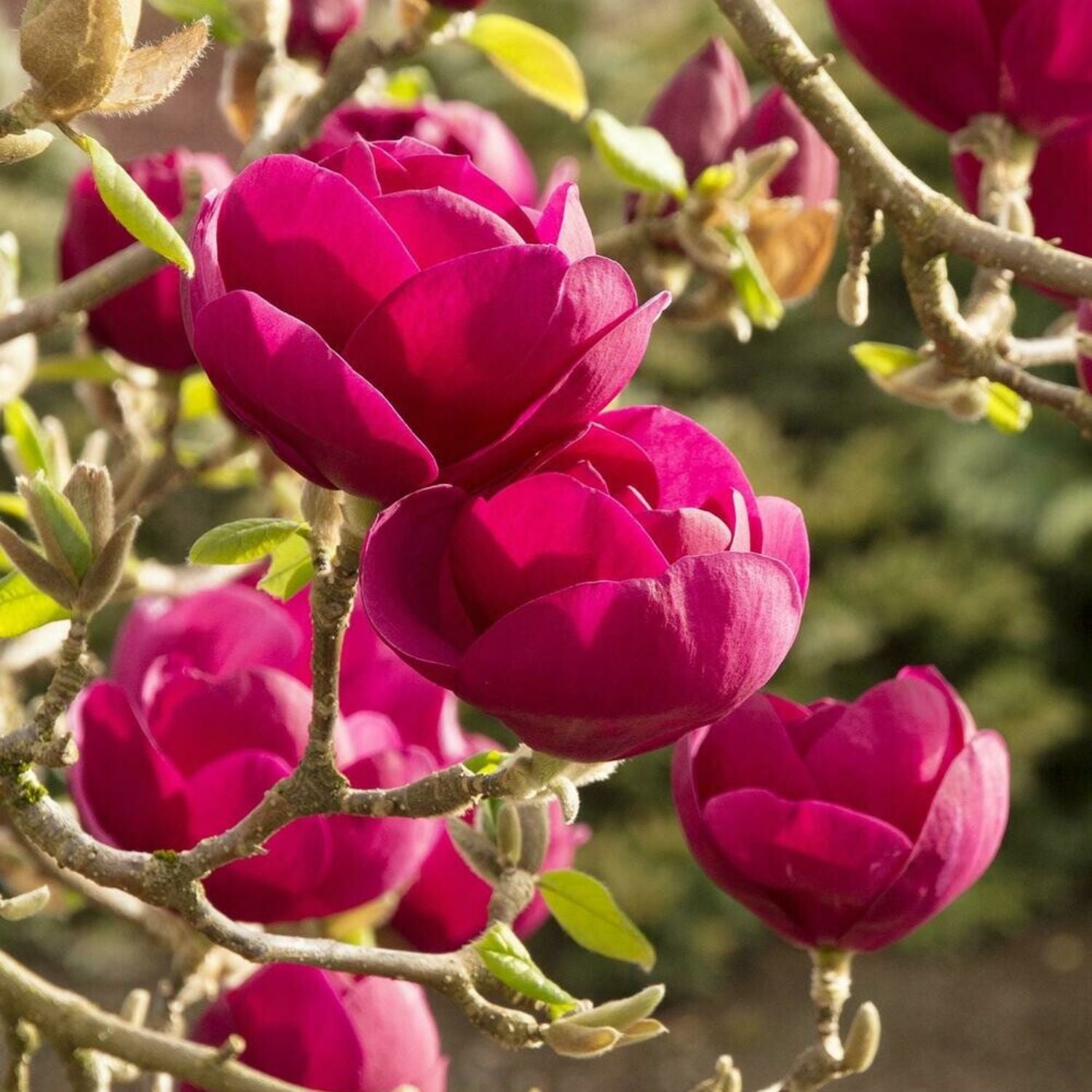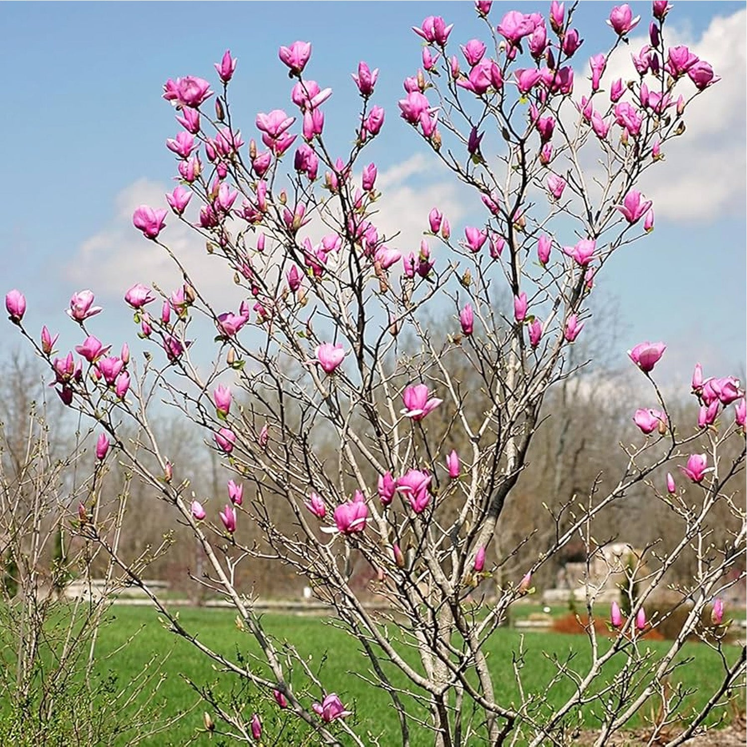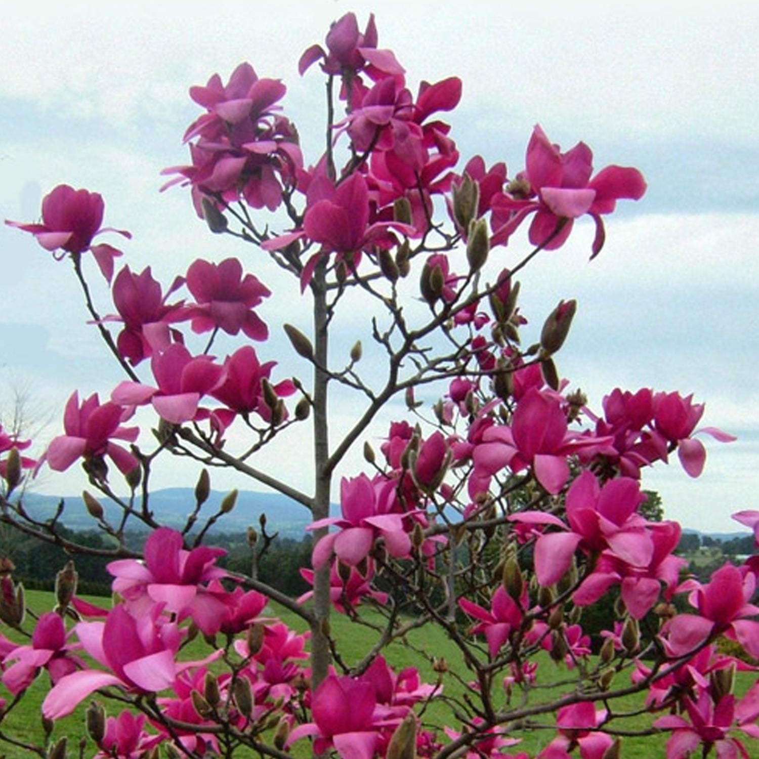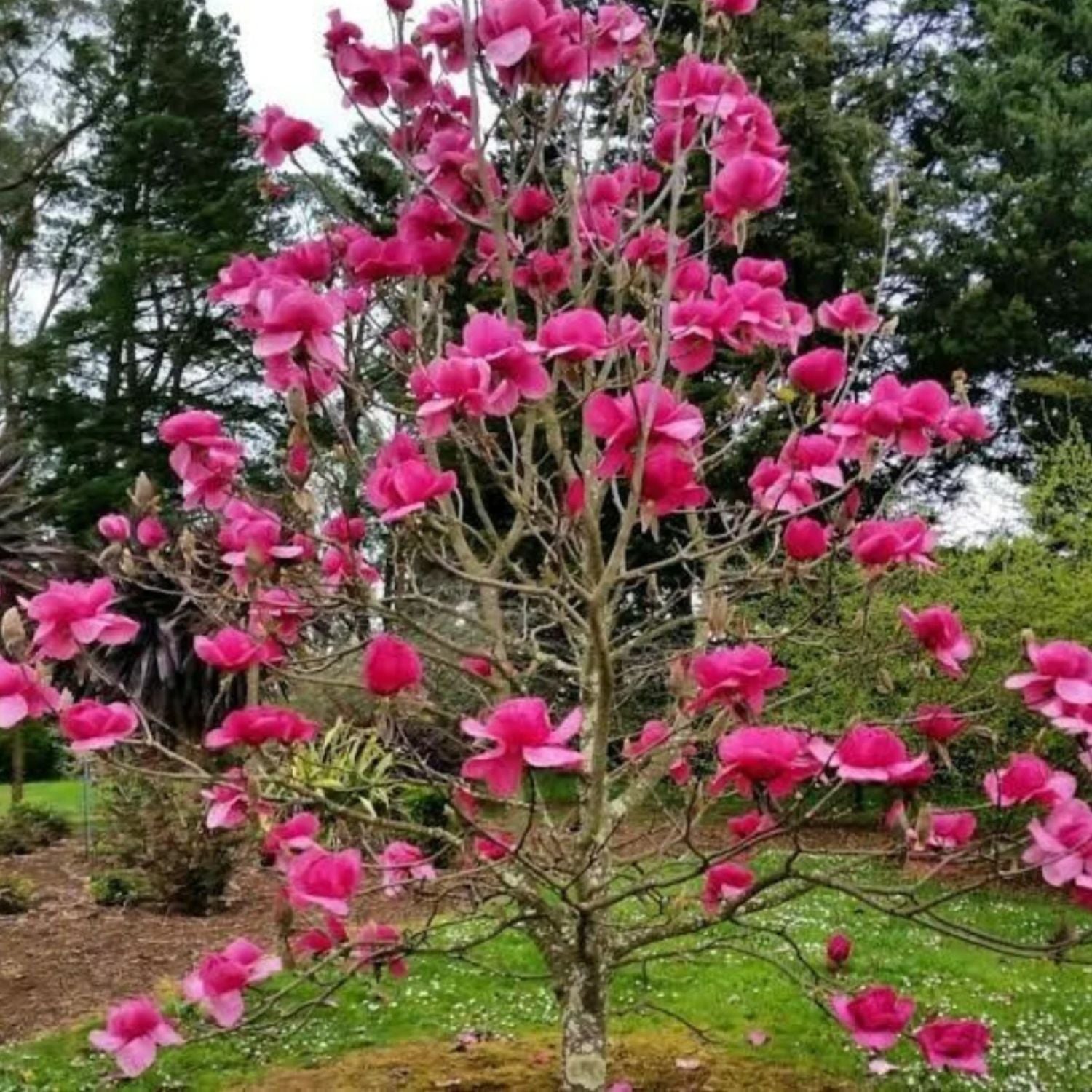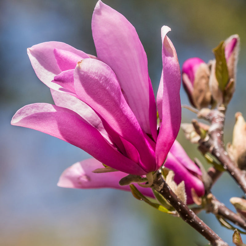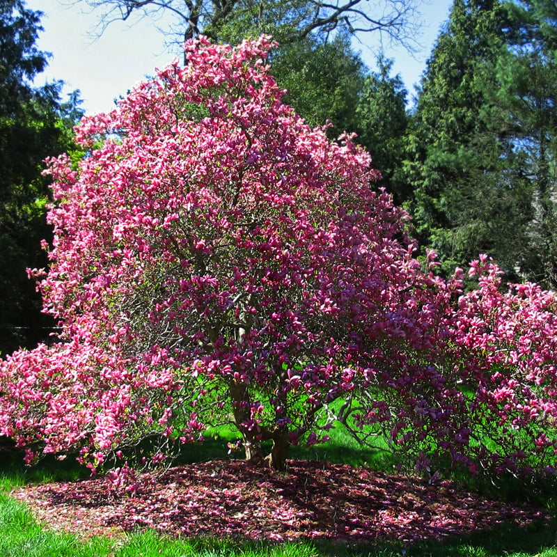 The Japanese magnolia, also called the saucer magnolia, is a deciduous variety known for its stunning, tulip-shaped flowers. Blooming in early spring before the leaves emerge, the flowers come in shades of pink, purple, and white, creating a breathtaking display. These trees are relatively small, reaching heights of 15 to 25 feet, making them ideal for smaller landscapes. Japanese magnolias prefer well-drained soil and full sun to partial shade. They are hardy in USDA Zones 4 to 9 and are valued for their ornamental beauty, often used as focal points in gardens.